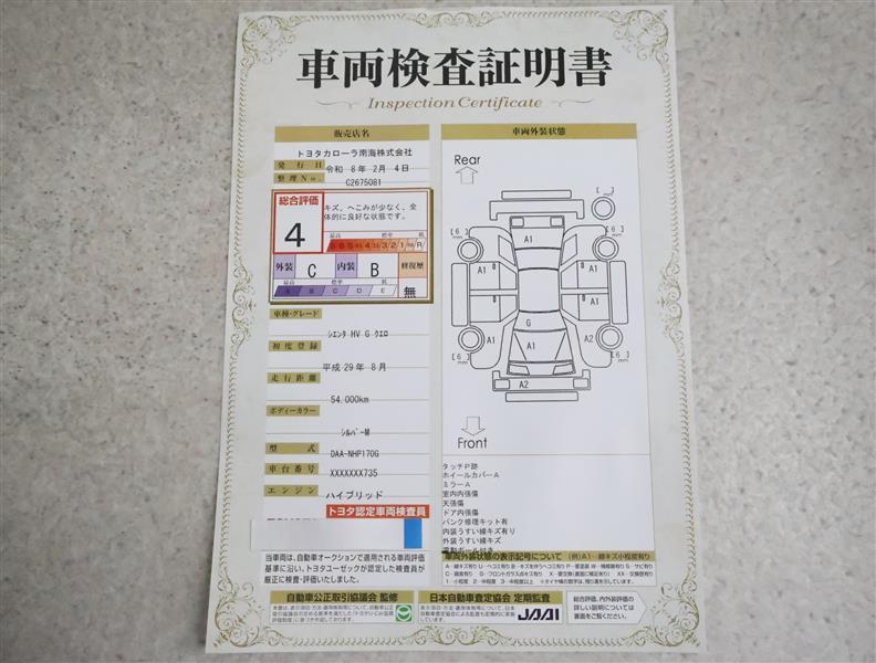 • 注2)上記と同様の評価点・状態表を「車両検査証明書」として店舗の展示車両に搭載しております。