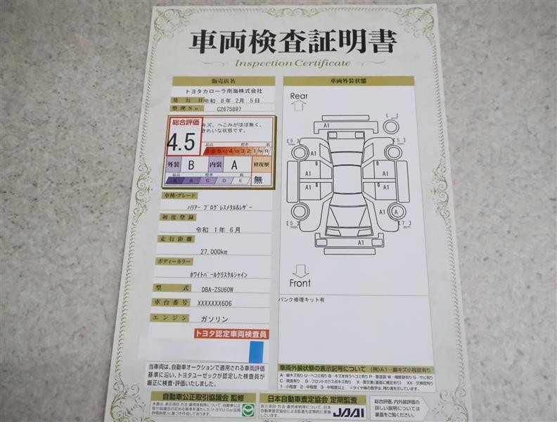 • 注1)本ページに掲載された評価は、車両検査実施時の車両状態を示したものです。