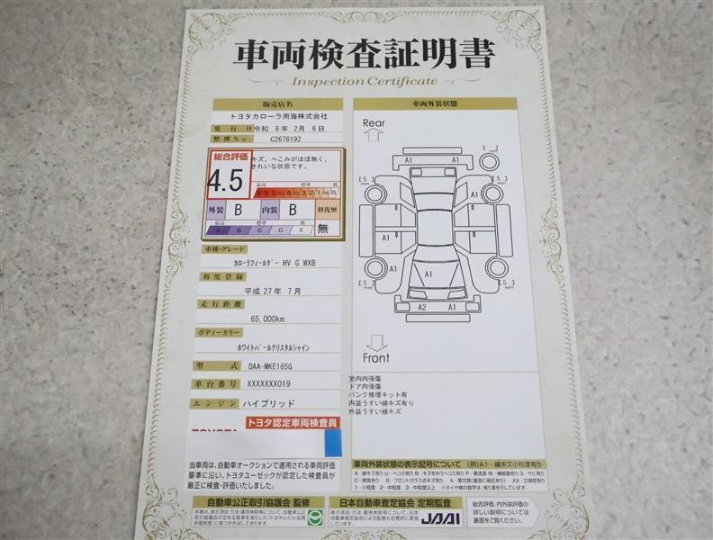 • 注1)本ページに掲載された評価は、車両検査実施時の車両状態を示したものです。