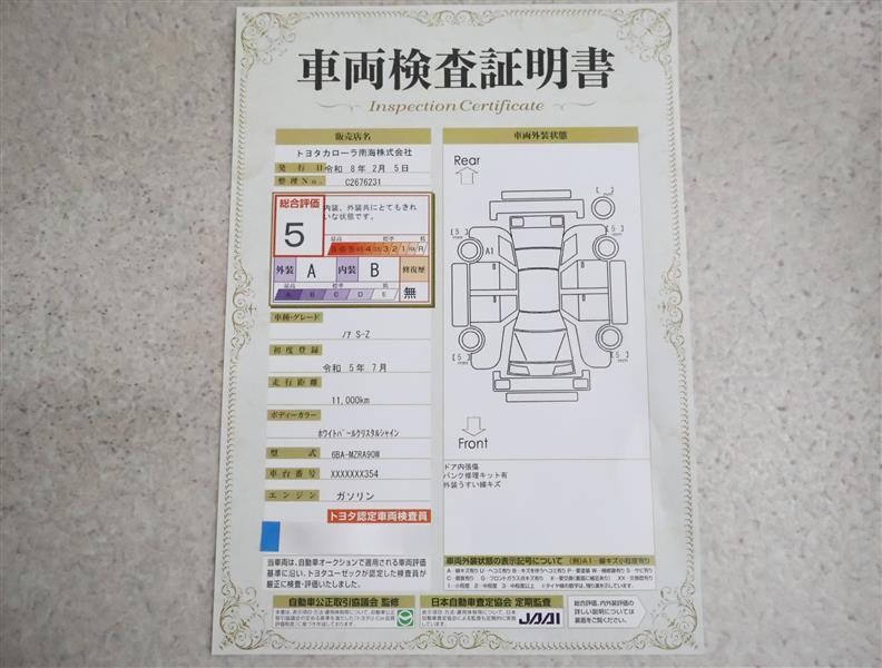 詳細及び現状の車両状態につきましては、店舗スタッフまでお尋ねください。 - 注2)上記と同様の評価点・状態表を「車両検査証明書」として店舗の展示車両に搭載しております。