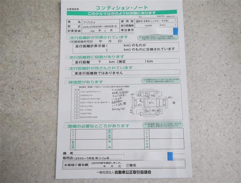 | 走行距離 | 132,000km | 修復歴 | なし |