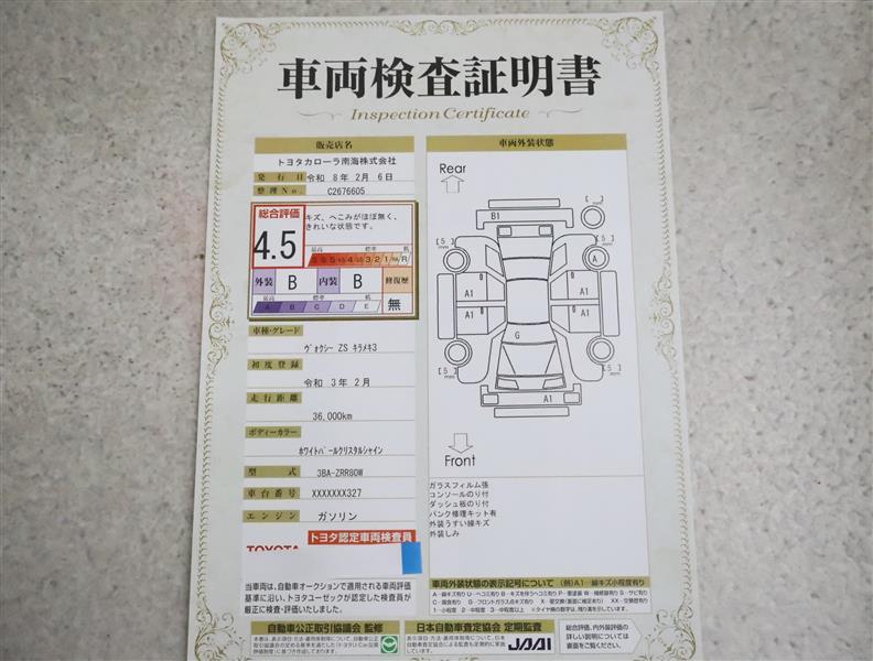詳細及び現状の車両状態につきましては、店舗スタッフまでお尋ねください。 - 注2)上記と同様の評価点・状態表を「車両検査証明書」として店舗の展示車両に搭載しております。
