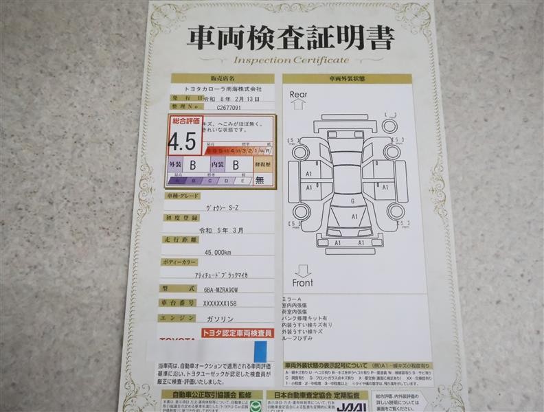 • 注2)上記と同様の評価点・状態表を「車両検査証明書」として店舗の展示車両に搭載しております。