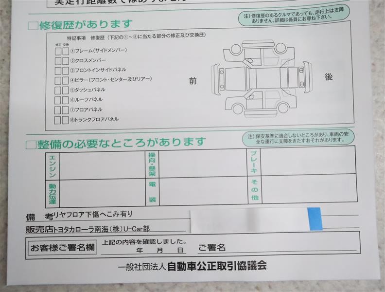 • 「修復歴あり」の場合、修復部位の詳細につきましては、販売店へお問合せください。