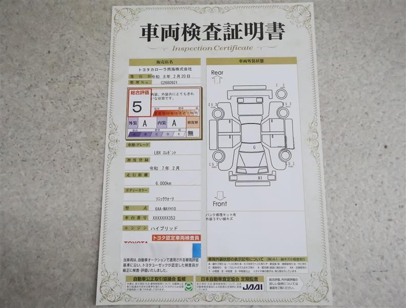 詳細及び現状の車両状態につきましては、店舗スタッフまでお尋ねください。 - 注2)上記と同様の評価点・状態表を「車両検査証明書」として店舗の展示車両に搭載しております。