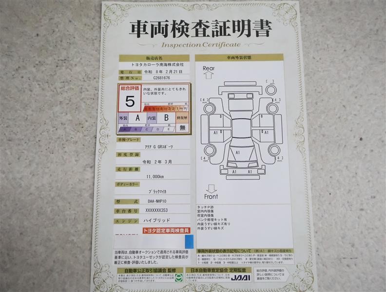 • 注1)本ページに掲載された評価は、車両検査実施時の車両状態を示したものです。
