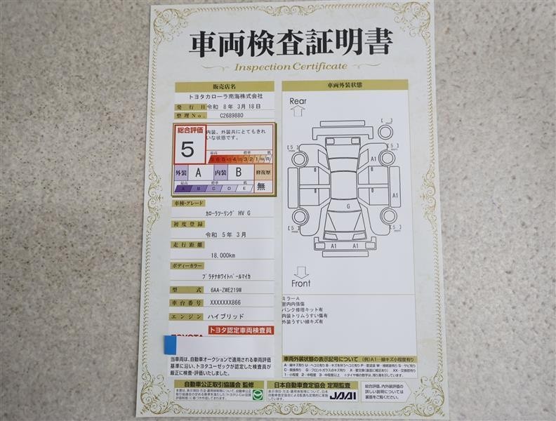 詳細及び現状の車両状態につきましては、店舗スタッフまでお尋ねください。 - 注2)上記と同様の評価点・状態表を「車両検査証明書」として店舗の展示車両に搭載しております。