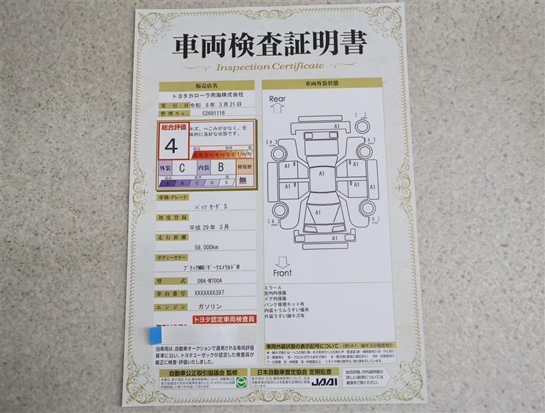 • 注2)上記と同様の評価点・状態表を「車両検査証明書」として店舗の展示車両に搭載しております。