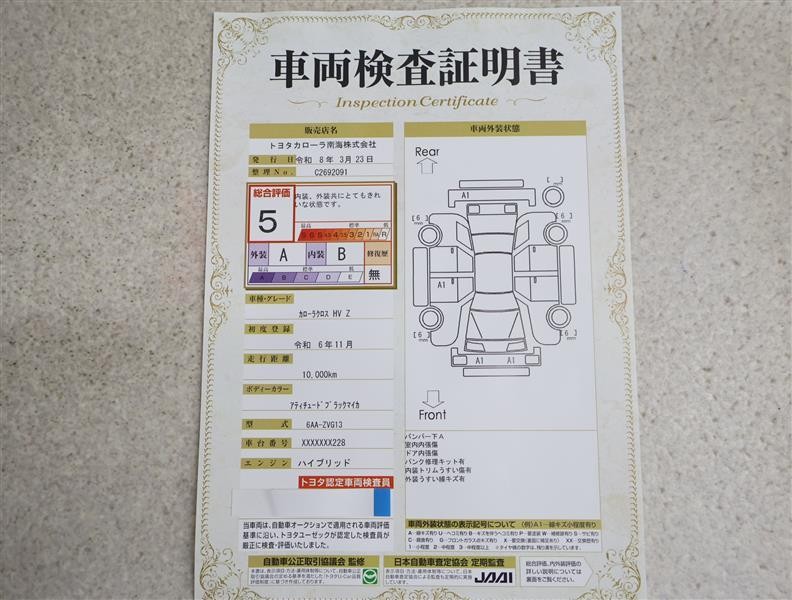 • 注2)上記と同様の評価点・状態表を「車両検査証明書」として店舗の展示車両に搭載しております。
