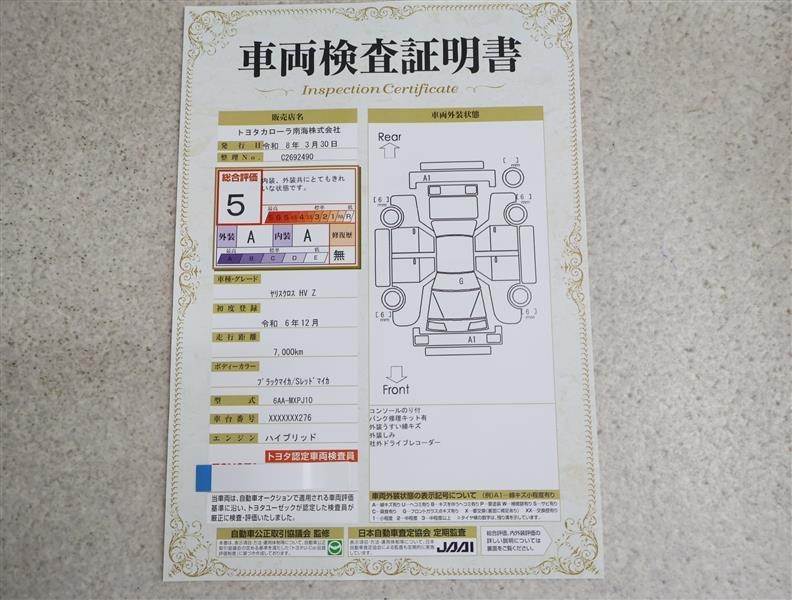 詳細及び現状の車両状態につきましては、店舗スタッフまでお尋ねください。 - 注2)上記と同様の評価点・状態表を「車両検査証明書」として店舗の展示車両に搭載しております。