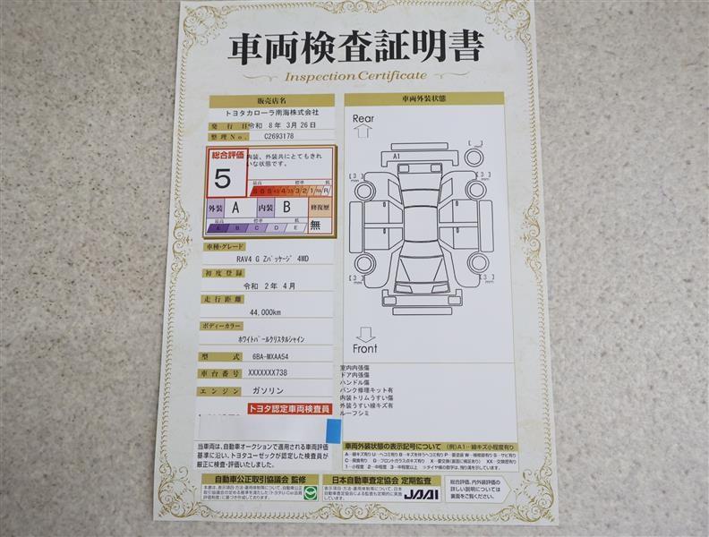 詳細及び現状の車両状態につきましては、店舗スタッフまでお尋ねください。 - 注2)上記と同様の評価点・状態表を「車両検査証明書」として店舗の展示車両に搭載しております。