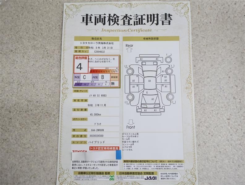 • 注2)上記と同様の評価点・状態表を「車両検査証明書」として店舗の展示車両に搭載しております。