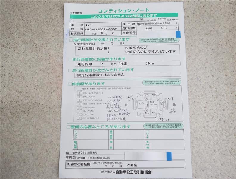 - 「定期点検整備なし(要整備箇所あり)」の場合、整備箇所につきましては、販売店へお問合せください。