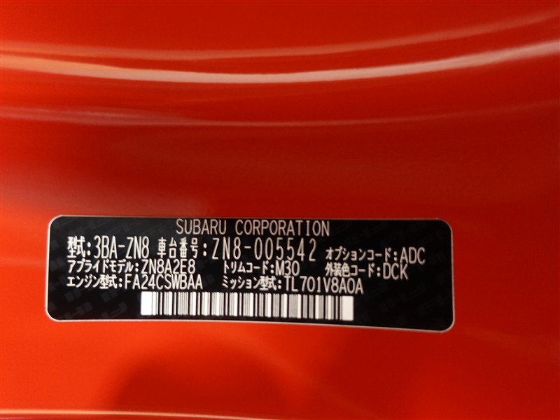 店舗管理ナンバー【364018853558】車台番号(下3桁)【542】