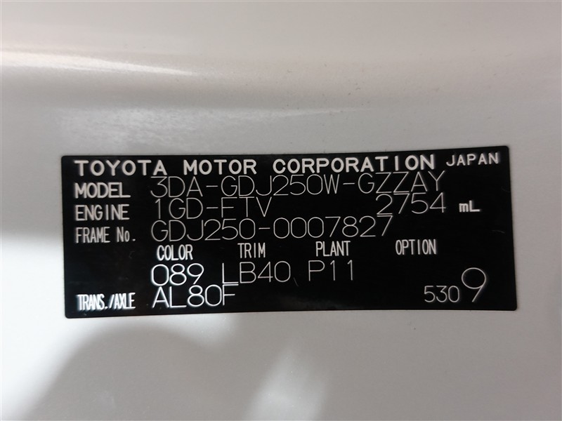 店舗管理ナンバー【364018860180】車台番号(下3桁)【827】