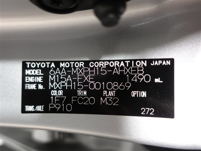 店舗管理ナンバー【364018863031】車台番号(下3桁)【869】