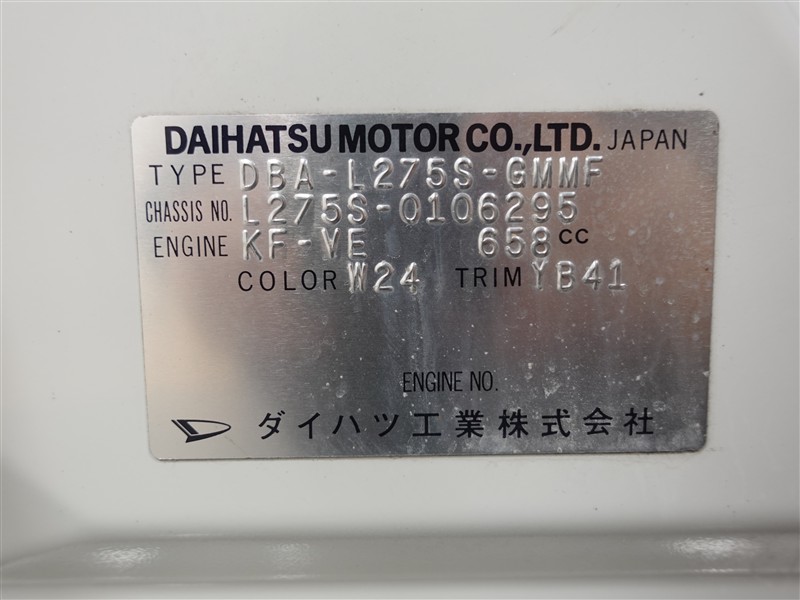 店舗管理ナンバー【364018864517】車台番号(下3桁)【295】
