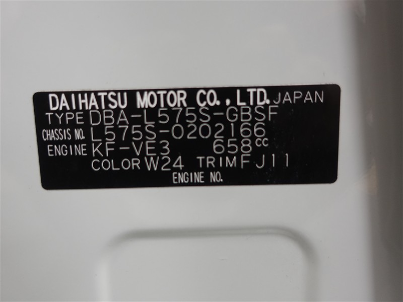 店舗管理ナンバー【364018868865】車台番号(下3桁)【166】