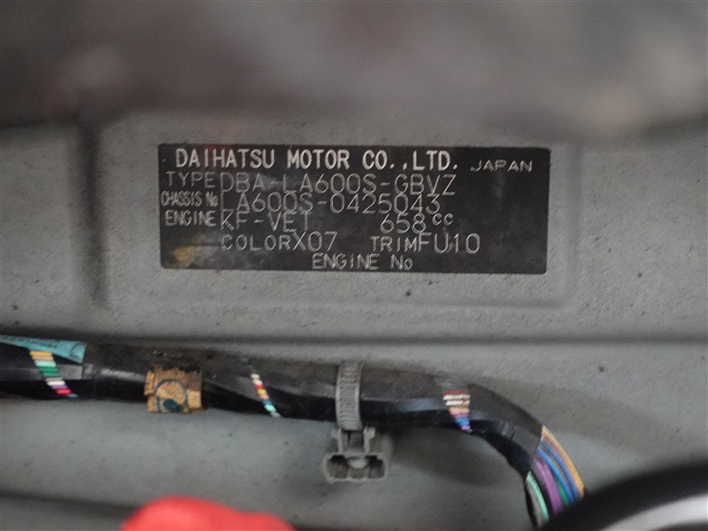 店舗管理ナンバー【364018881951】車台番号(下3桁)【043】