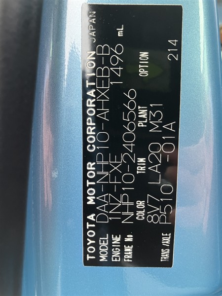 店舗管理ナンバー【364018883538】車台番号(下3桁)【566】
