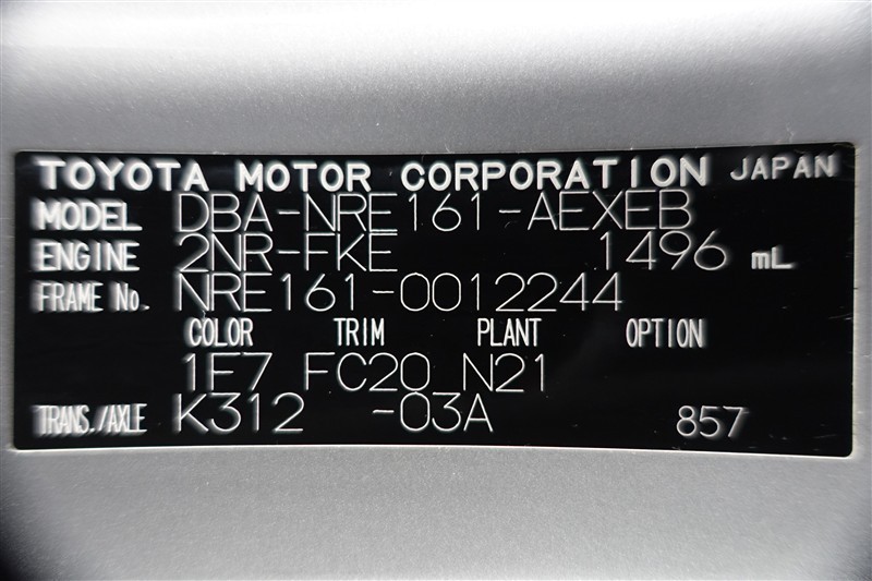 店舗管理ナンバー【381027935038】車台番号(下3桁)【244】