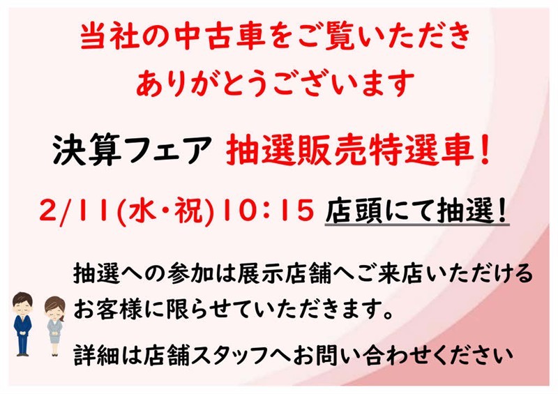 イベント特選車先行掲載!2月11日より販売開始!希望者多数の場合は展示店舗にて抽選となります。