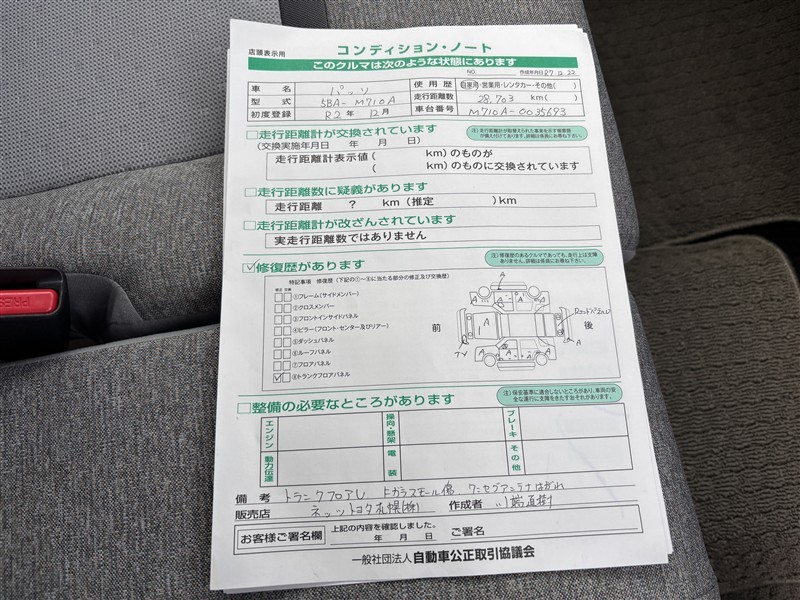 走行距離 29,000km 修復歴 あり