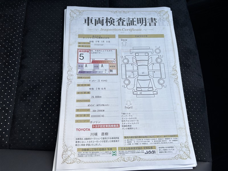 詳細及び現状の車両状態につきましては、店舗スタッフまでお尋ねください。 - 注2)上記と同様の評価点・状態表を「車両検査証明書」として店舗の展示車両に搭載しております。