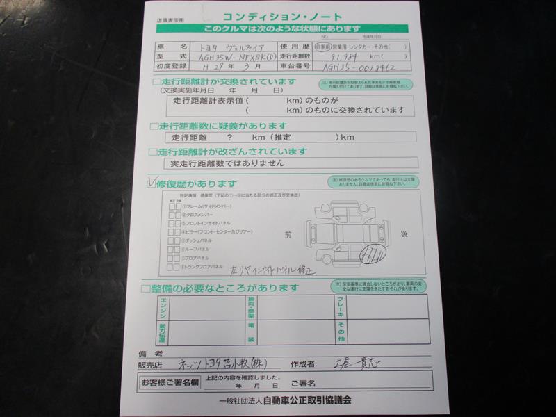 走行距離 92,000km 修復歴 あり