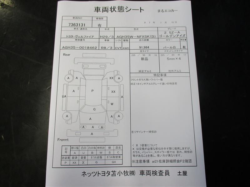 店舗管理ナンバー【417017363131】車台番号(下3桁)【462】