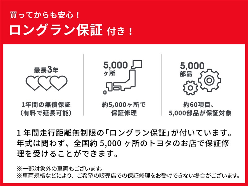 保証内容※1 保証付:ロングラン保証1年<走行距離無制限>