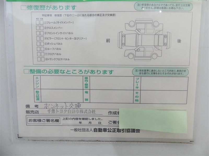 - 「修復歴あり」の場合、修復部位の詳細につきましては、販売店へお問合せください。