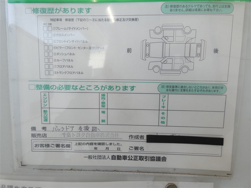 - 「定期点検整備なし(要整備箇所あり)」の場合、整備箇所につきましては、販売店へお問合せください。