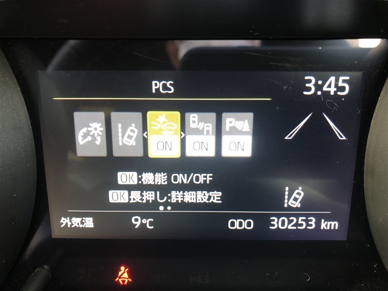 - 予防安全装置の各機能の作動には、速度や対象物等の条件があります。また、道路状況、車両状態、天候等により作動しない場合があります。