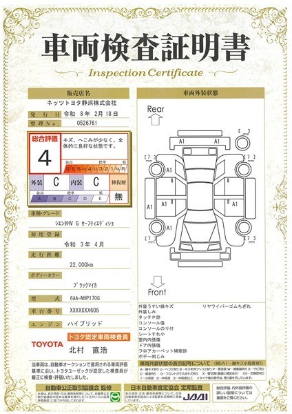 • 注1)本ページに掲載された評価は、車両検査実施時の車両状態を示したものです。