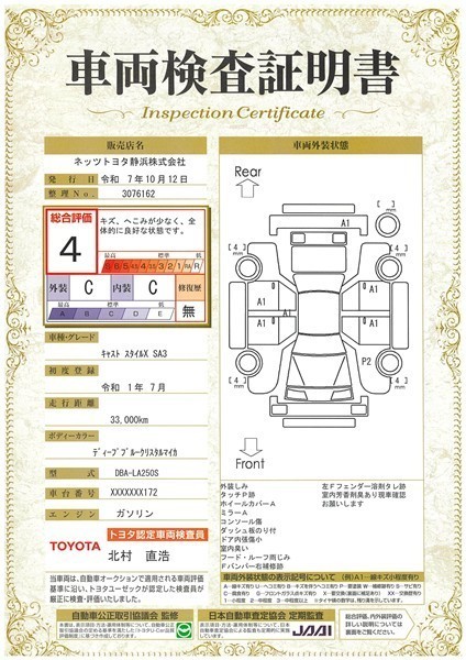 • 注1)本ページに掲載された評価は、車両検査実施時の車両状態を示したものです。