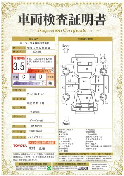 - 注1)本ページに掲載された評価は、車両検査実施時の車両状態を示したものです。