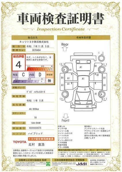 • 注1)本ページに掲載された評価は、車両検査実施時の車両状態を示したものです。