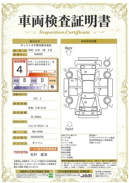• 注1)本ページに掲載された評価は、車両検査実施時の車両状態を示したものです。