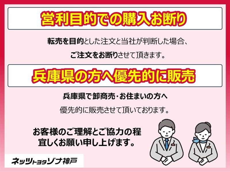 | 保証内容※1 | 保証付:ロングラン保証1年<走行距離無制限> +ハイブリッド保証<保証期間は初度登録年月から10年目まで、もしくは3年間のいずれか長い方。但し走行距離20万キロまで> |