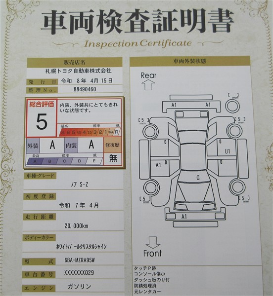 本ページに掲載された評価は、車両検査実施時の車両状態を示したものです。