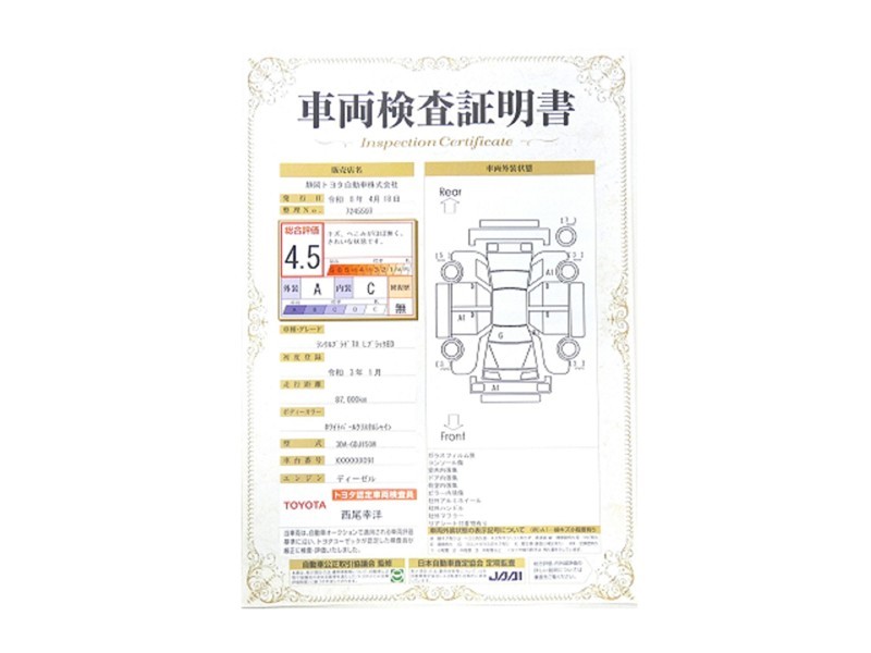 本ページに掲載された評価は、車両検査実施時の車両状態を示したものです。