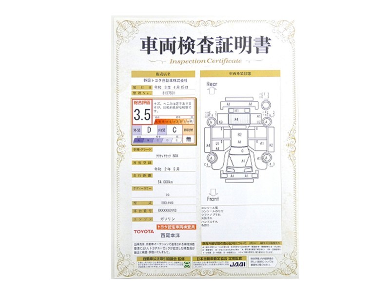 本ページに掲載された評価は、車両検査実施時の車両状態を示したものです。