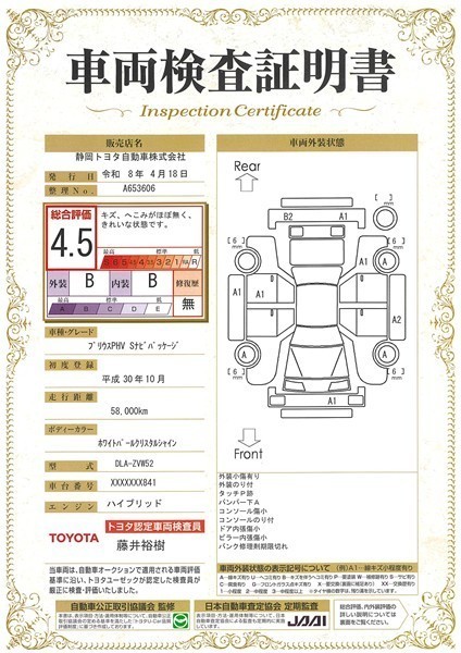 本ページに掲載された評価は、車両検査実施時の車両状態を示したものです。
