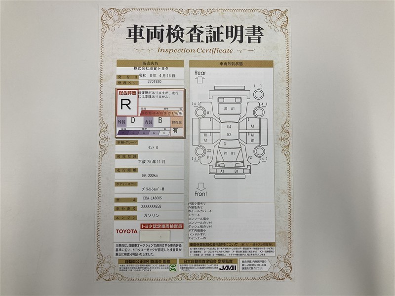 本ページに掲載された評価は、車両検査実施時の車両状態を示したものです。