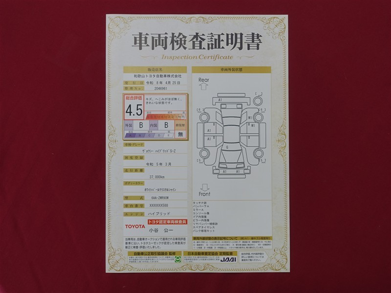 上記と同様の評価点・状態表を「車両検査証明書」として店舗の展示車両に搭載しております。