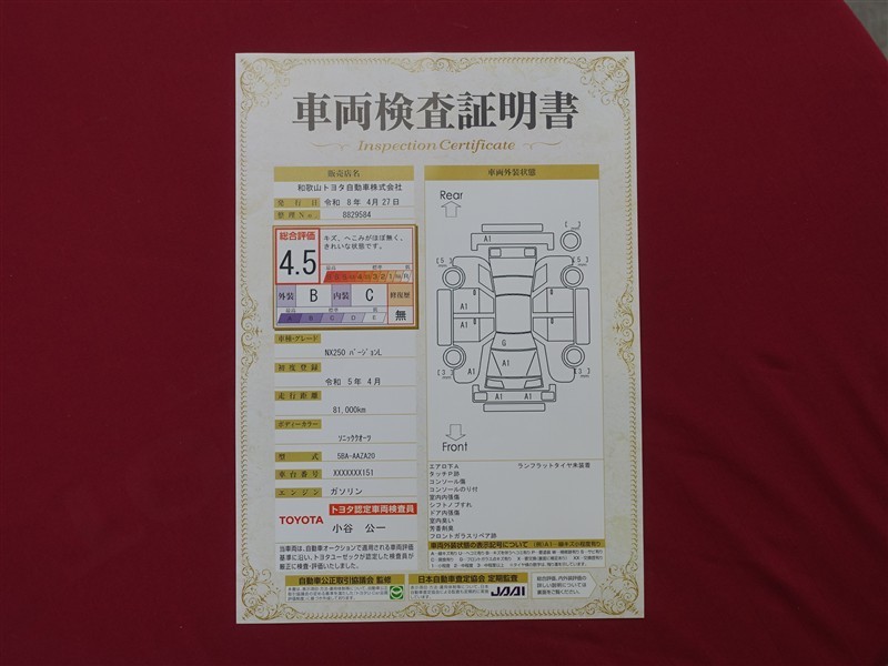 本ページに掲載された評価は、車両検査実施時の車両状態を示したものです。