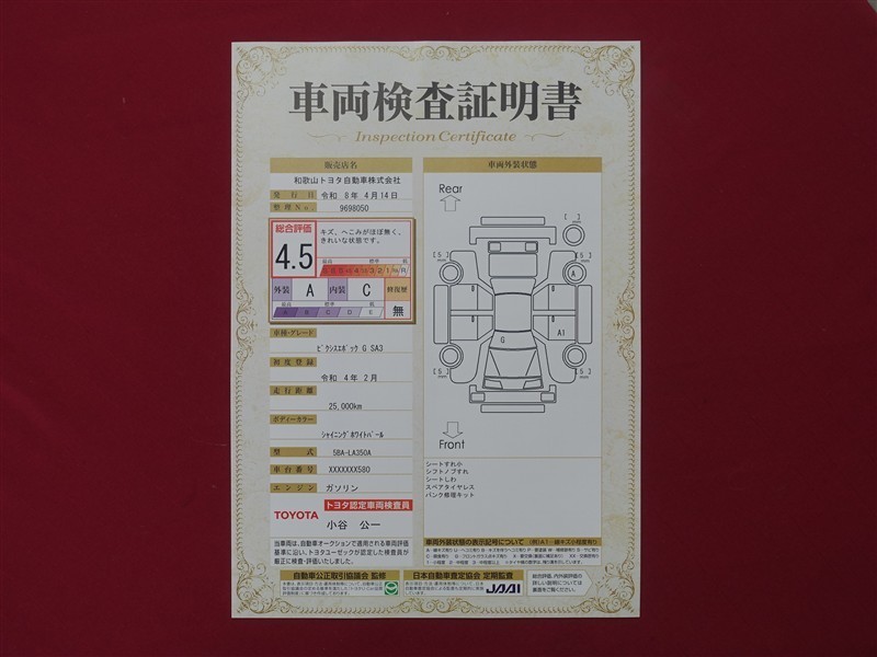 本ページに掲載された評価は、車両検査実施時の車両状態を示したものです。
