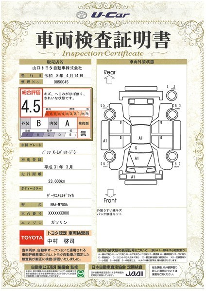 本ページに掲載された評価は、車両検査実施時の車両状態を示したものです。