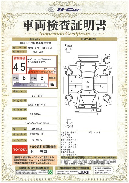 本ページに掲載された評価は、車両検査実施時の車両状態を示したものです。